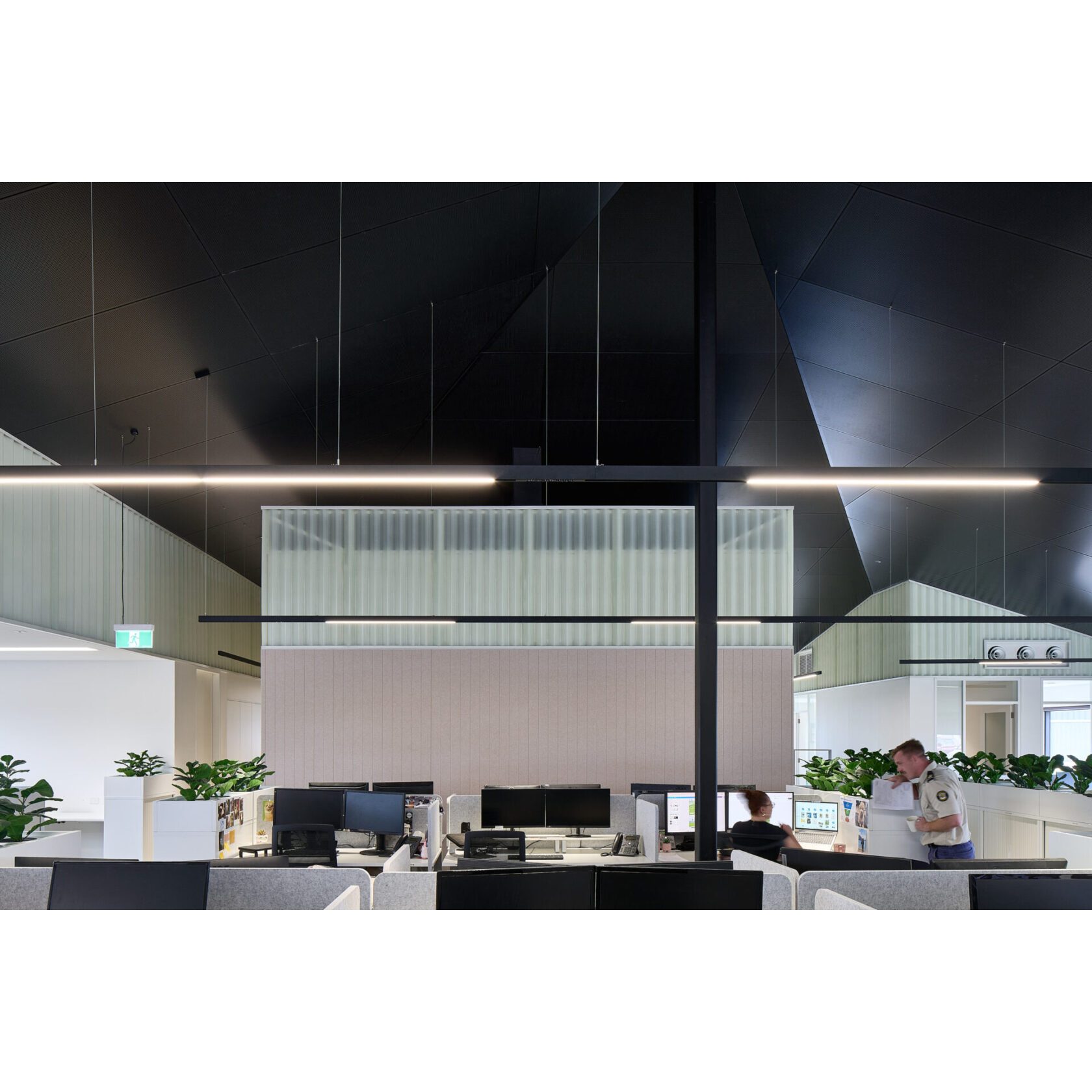 A diverse range of lighting applications has been incorporated throughout the building to suit its varied functions and spaces. Downlights and linear extrusions are used extensively across main areas and thoroughfares, providing consistent, clean design and visual continuity. Outdoor areas such as the carpark and surrounds feature streetlighting, while interior spaces include track lighting, spotlights, wall-mounted fixtures and extrusion. Suspended extrusions are also utilised and feature throughout the office areas, contributing to both functional lighting and the overall modern design of the area.
